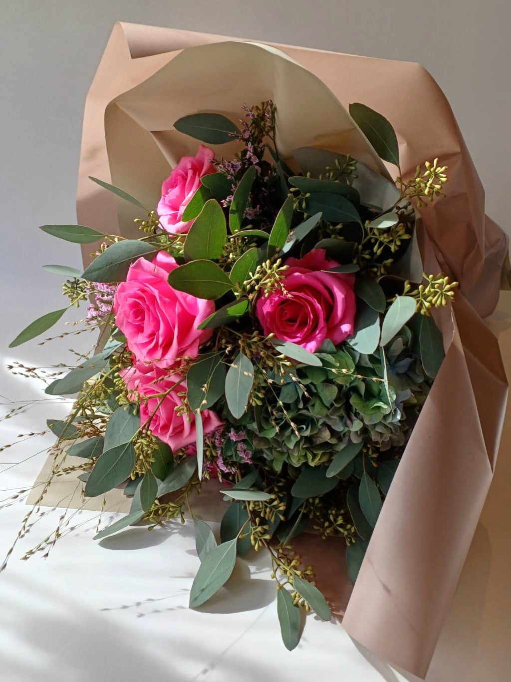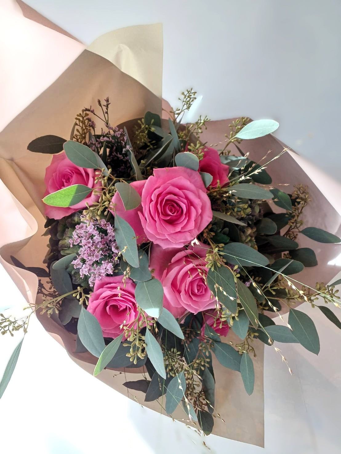 B-0701【そのままドライフラワー】バラとユーカリの花束